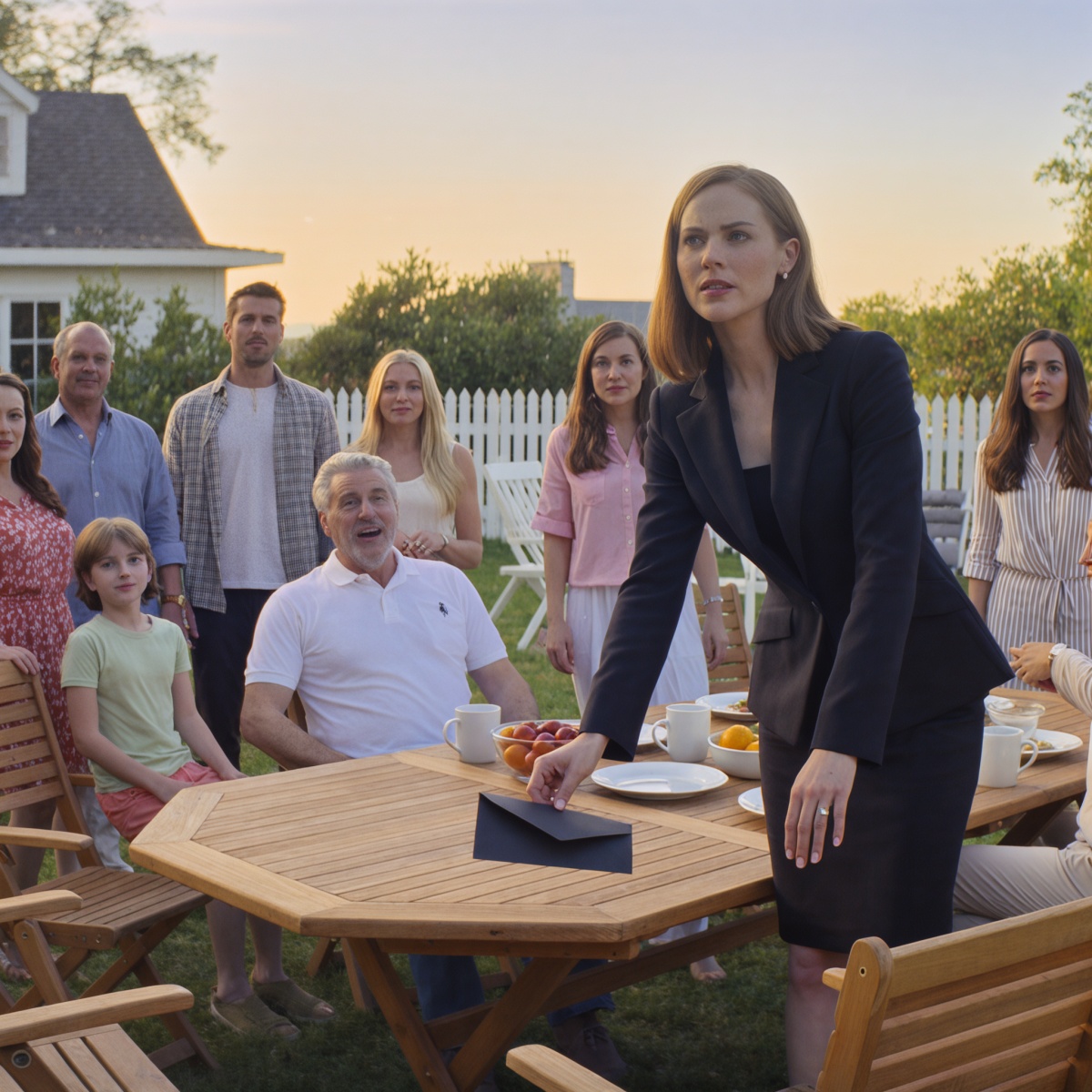 La risa se apagó, reemplazada por el roce de los tenedores y el tintineo de los cubitos de hielo. Mi madre, siempre conciliadora, estaba de pie cerca de la parrilla, rellenando los vasos con una sonrisa forzada. Su mirada se posó en mí una vez, suave y culpable, y luego la apartó. No me defendería. Nunca lo hacía.